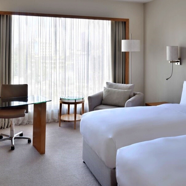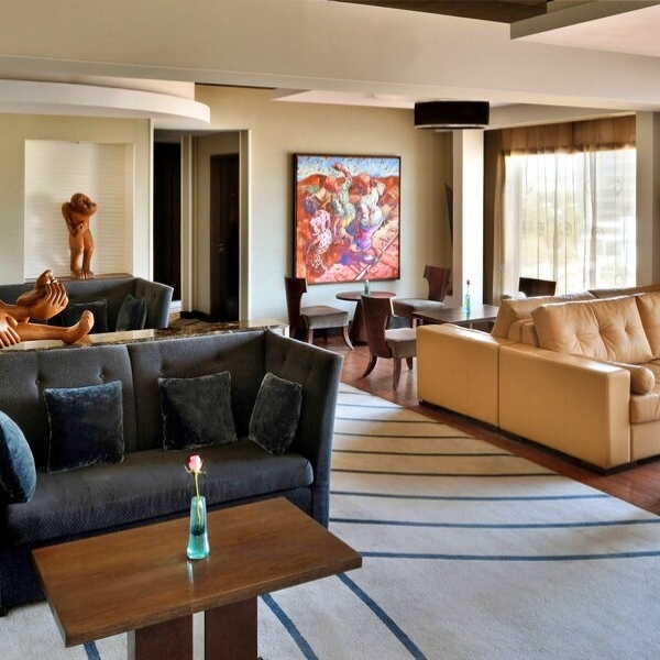 A junior suite situated at corner section of the hotel floor, contemporary designed and decorated